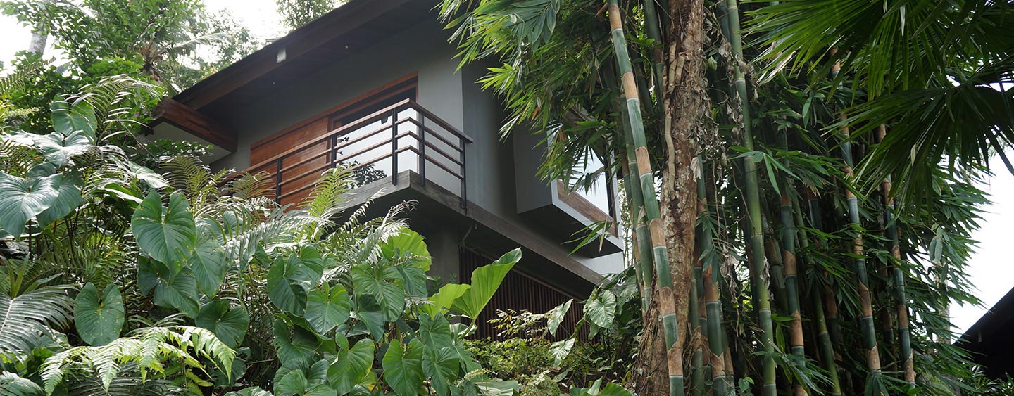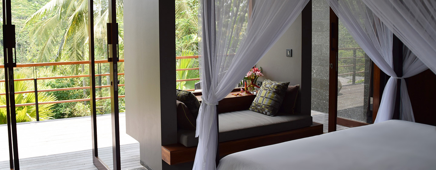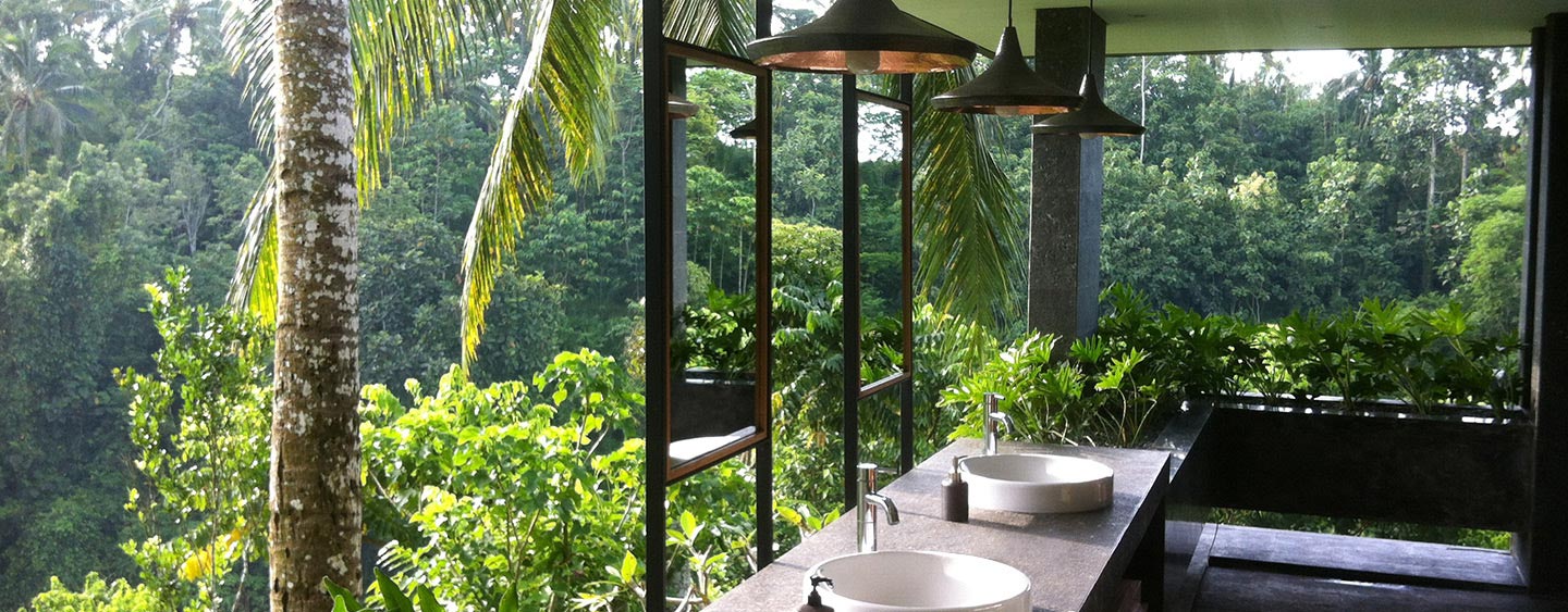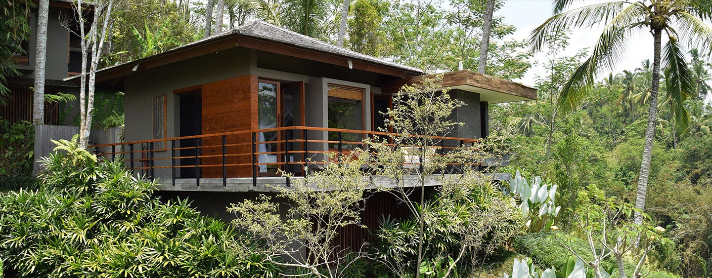 Four independent luxury villas nested in a tropical garden with open views on the wild lush valley. The villas have been designed and positioned to offer you the maximum privacy.