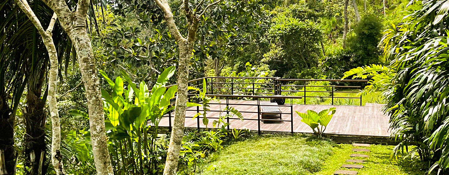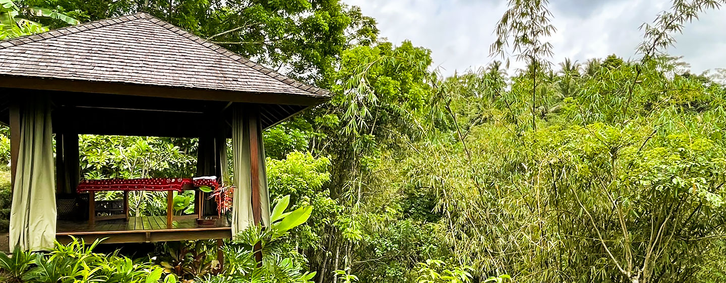 In a secluded area of our tropical garden, the Bale Massage overviews the forest of the Sungi River Valley.