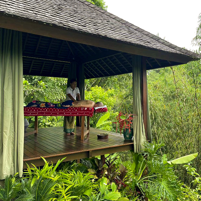 You will enjoy the Serenity of the place with bird songs and river water flowing while the masseur will give you a traditional Balinese massage.
